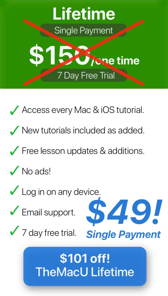 Welcome! Your All Access membership is now underway. Login from any device at www.TheMacU.com/members-home.